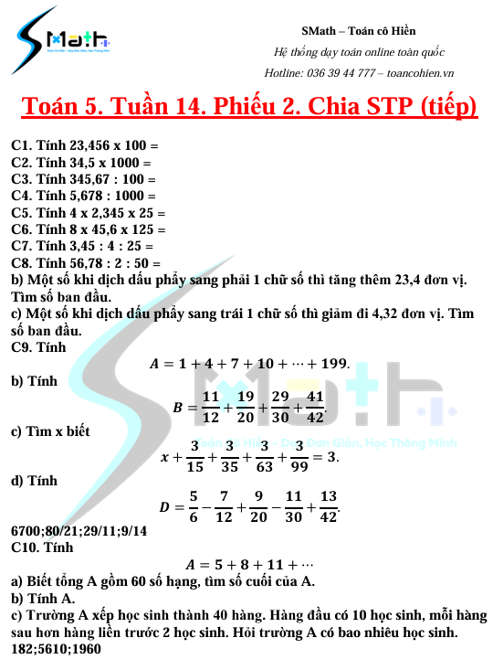 Đề học kì 1 số 2 - Toán 5 Chân trời