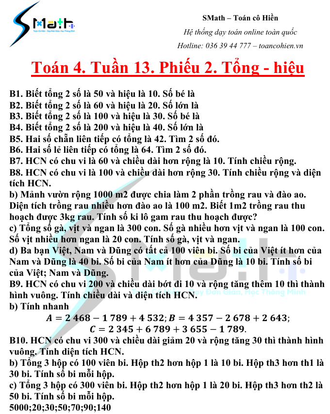 Bài toán Tổng - Hiệu
