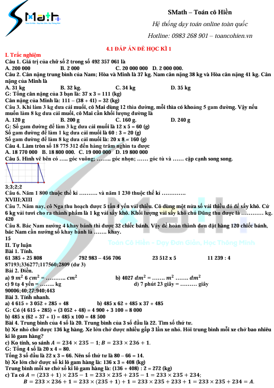 Đề học kì 1 số 1 - Toán 4 Cánh diều