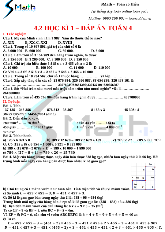 Đề học kì 1 số 2 - Toán 4 Cánh diều